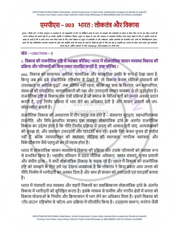 IGNOU MPS-03 Solved Assignment 2025-26 Hindi Medium