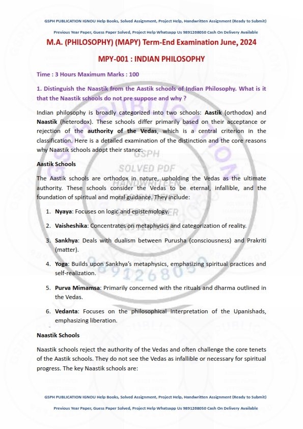 Disclaimer: The Previous Year Solved Papers are prepared using IGNOU books and online sources. They must be downloaded within 7 days of payment, either from the website or the link sent via email. A full refund is offered in case of any incorrect Previous Year Solved Papers.