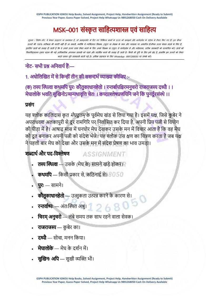 Product | IGNOU MSK-01 Solved Assignment 2025-26 Sanskrit Medium |