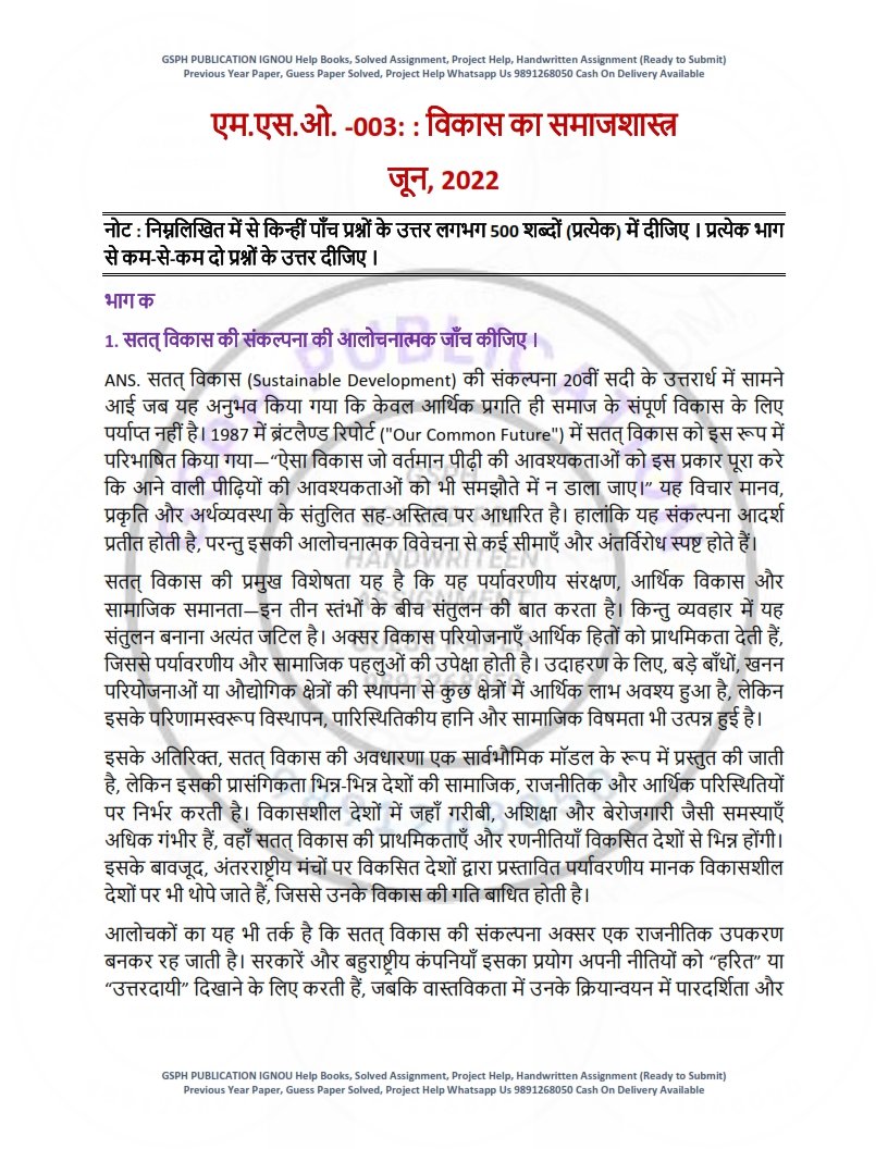 Disclaimer: The Previous Year Solved Papers are prepared using IGNOU books and online sources. They must be downloaded within 7 days of payment, either from the website or the link sent via email. A full refund is offered in case of any incorrect Previous Year Solved Papers.