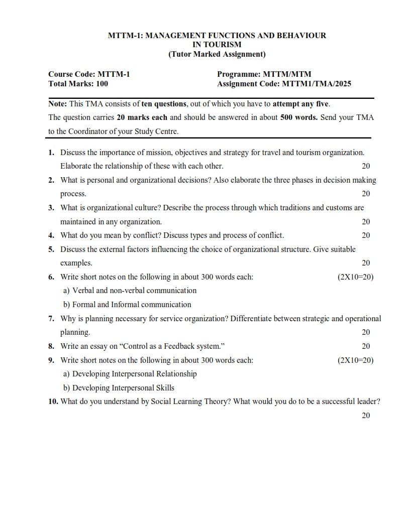 IGNOU MTTM-10 Solved Assignment 2025 English Medium